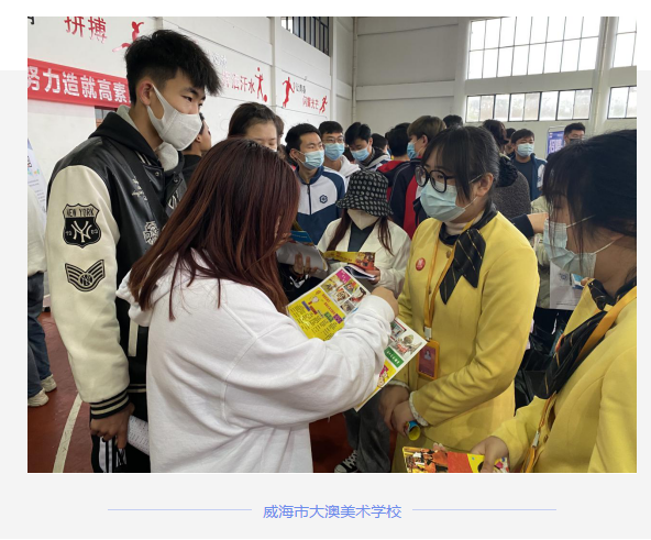 会员企业威海市大澳美术学校参加威职艺术学院举办的就业实习宣讲会,大澳美术学校校长赵云山学长面对面地向同学们介绍公司概况,人员需求以及职业发展方向等等。