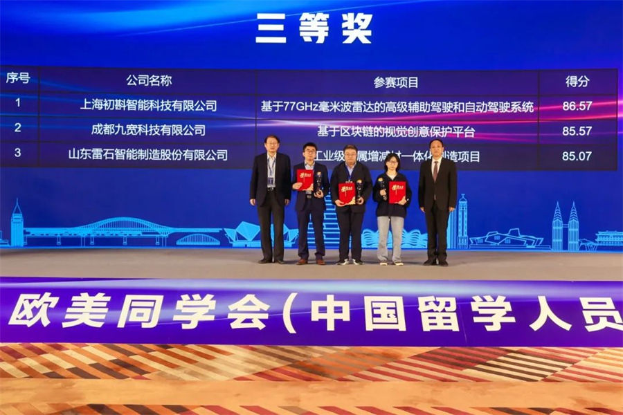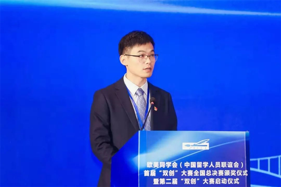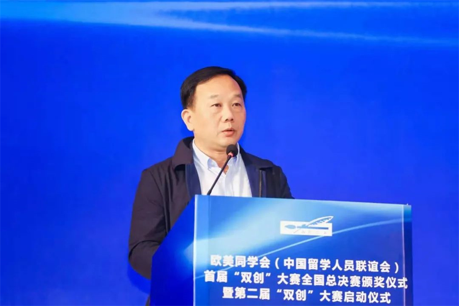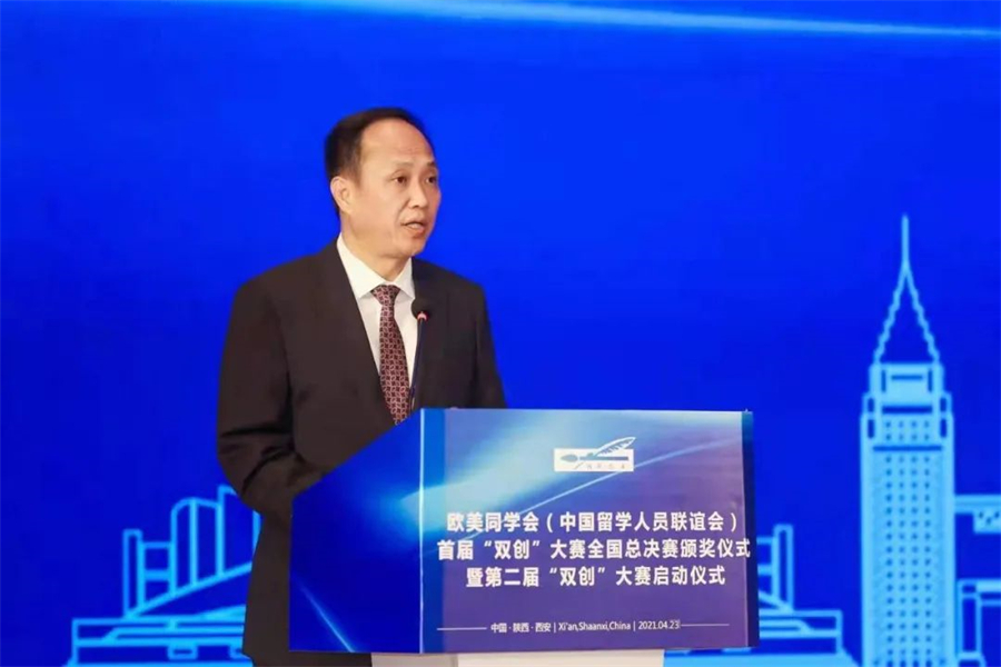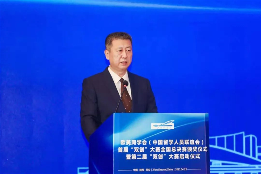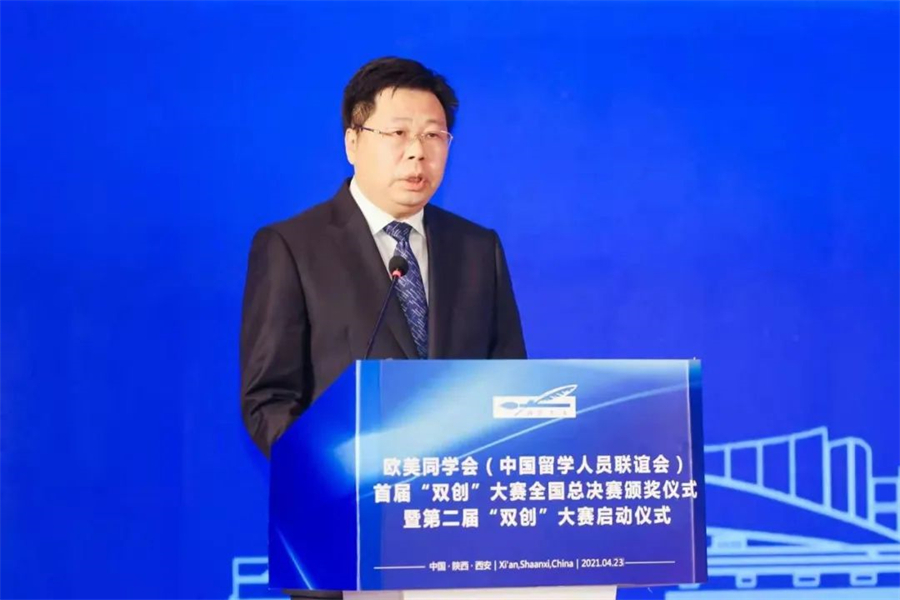 欧美同学会党组成员、副秘书长程洪明主持。 和文全在致辞时说,广大留学人员具有开阔的国际视野,饱含创新创业的时代激情,拥有国际性、高知性、创新性的优势特点,是社会的精英和未来的创造者。欧美同学会首届“双创”大赛的举办,就是贯彻落实党中央决策部署和习近平总书记重要指示精神,围绕国家创新发展战略,推动以科技创新为核心的经济社会高质量发展的重要举措和实际行动。 经过两天紧张有序的参赛项目路演、答辩、评审等环节,欧美同学会首届“双创”大赛共评出一等奖1名,二等奖2名,三等奖3名,优胜奖6名。 “离网式污水处理智慧解决方案”获得一等奖;“微流体生物检测芯片”和“多核3D点云人工智能芯片处理器”获得二等奖,“基于77GHz毫米波雷达的高级辅助驾驶和自动驾驶系统”“基于区块链的视觉创意保护平台”“工业级金属增减材料一体化制造”获三等奖;另有“多传感器算法融合终端”“ZCV零损耗高压缩视频编码技术产业化”“下一代婴配食品原料——人乳寡糖(HMOs)生物合成的新型技术”“植物瞬时表达技术平台生产药用蛋白”“数字机器人”“新冠疫苗完整自主知识产权预灌封注射器生产线全国产业化项目”获得优胜奖。 “坚持创新驱动发展,全面塑造发展新优势”,是党中央立足新发展阶段确立的重大发展战略。欧美同学会认真贯彻落实党中央决策部署,立足自身职能和优势,积极搭建平台载体,为留学人员创新创业创造提供舞台,助力地方经济社会高质量发展。“双创”大赛即是欧美同学会探索出的又一新模式。去年10月21日,欧美同学会首届“双创”大赛在安徽省合肥市盛大启幕,大赛以“同心助力复工复产达产,创新创业创造共赢未来”为主题;按目标产业类别,设置东部、西部、北部、中部4个赛区,吹响了新时期号召海归争当创新创业先锋的集结号。 参加首届“双创”大赛颁奖仪式的嘉宾还有首届“双创”大赛四个赛区承办单位省级欧美同学会有关负责同志,第二届“双创”大赛四个赛区承办单位省级欧美同学会有关负责同志,评审专家,参赛代表,其他各省区市、新疆生产建设兵团欧美同学会、中央企业欧美同学会、中科院留学人员联谊会有关负责同志,以及陕西省和西安市欧美同学会有关负责同志等,总计200多人。