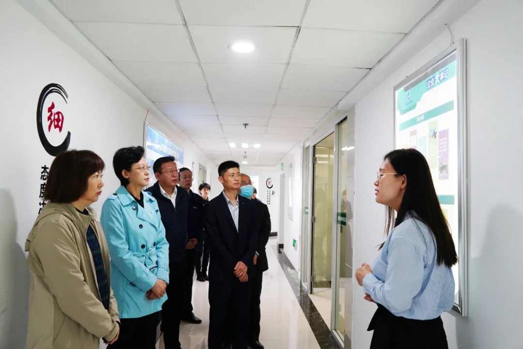 在济南磐升生物技术有限公司,参观公司实验室和生产车间,听取企业发展情况汇报。