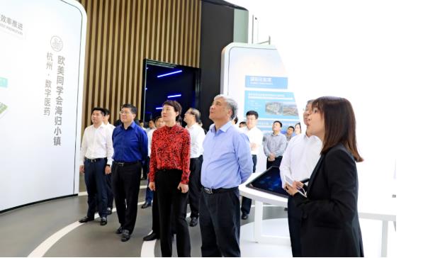 5月24日,全国人大常委会副委员长、欧美同学会(中国留学人员联谊会)会长丁仲礼一行到杭州萧山科技城,实地调研欧美同学会海归小镇(杭州·数字医药)申建情况。全国政协常委、欧美同学会副会长曹卫星,欧美同学会副会长、浙江省欧美同学会会长、西湖大学校长施一公,欧美同学会党组书记、秘书长王丕君等参加调研,浙江省人民政府副省长、民盟浙江省委会主委成岳冲,中共杭州市委副书记、萧山区委书记佟桂莉,杭州市委组织部部长毛溪浩,杭州欧美同学会会长、杭州市政协副主席叶鉴铭等陪同调研。