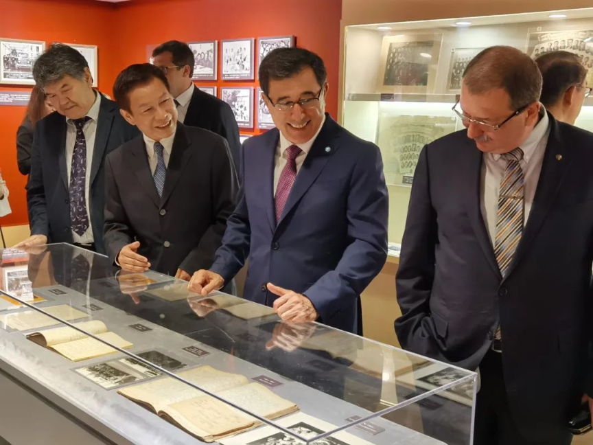 今年是上海合作组织成立20周年,6月24日“上海合作组织20年:回眸与前瞻”国际研讨会在上海举行。诺罗夫秘书长是利用会议间隙,特意前来参观留苏档案展的。