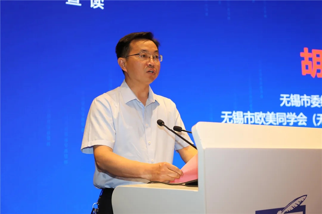 无锡市欧美同学会常务副会长、锡山区欧美同学会会长、无锡晓枫信息产业研究院有限公司执行董事虞晓枫为大会成立致贺辞。