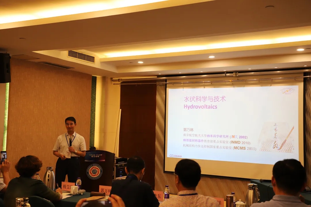 论坛邀请中科院院士、南京航空航天大学教授、南京欧美同学会会长郭万林作《水伏科学与技术》主旨报告。郭院士从水伏学提出背景、什么是水伏效应、水伏效应材料三个方面深入浅出分享自己多年潜心研究成果,并对开发水伏能源、优化水伏生态、发展水伏智能、创建水伏科学中心进行了展望。