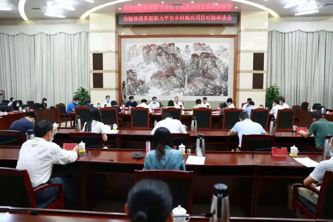 近日,北京市级统战资源助力平谷乡村振兴项目对接座谈会在平谷区召开。北京市委统战部副部长严卫群主持,平谷区委书记唐海龙,北京市欧美同学会秘书长王璞,平谷区领导李永生、刘建华出席会议。