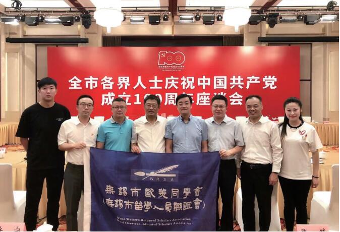 中国工程院院士、江南大学校长、无锡市欧美同学会会长陈卫(左四)参加全市各界人士庆祝中国共产党成立100周年座谈会