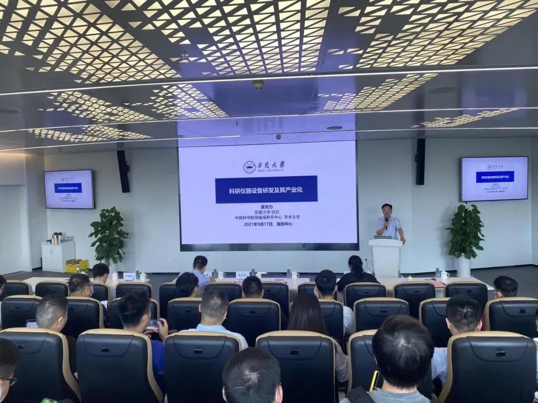 匡光力以安徽大学物质科学与信息技术研究院为例,讲解了科研仪器设备现状,并从合肥综合性国家科学中心建设角度阐述了科研仪器设备研发相关问题。最后,匡光力介绍了科研仪器设备产业化的相关情况。