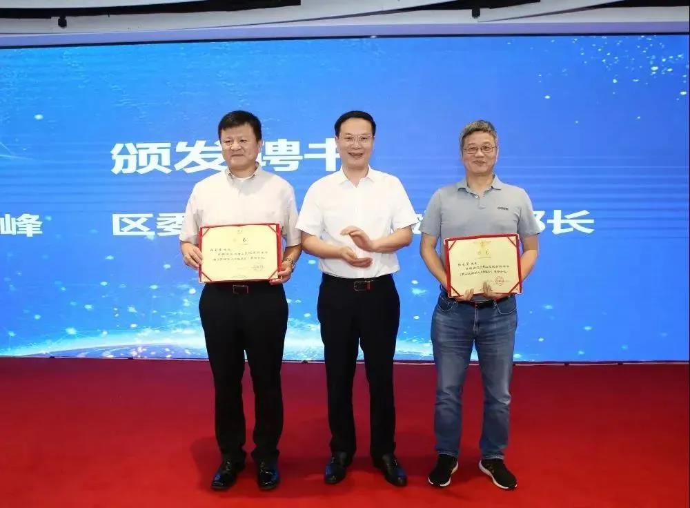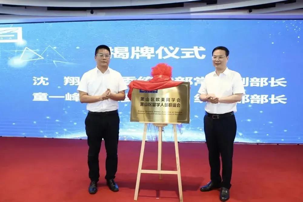 沈翔、童一峰为萧山区欧美同学会(萧山区留学人员联谊会)揭牌