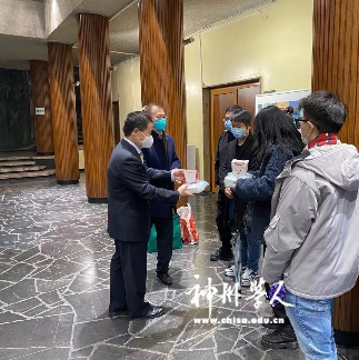 2021年10月15日上午,中国驻保加利亚使馆董晓军大使和教育事务负责人毛彦成老师,在普罗夫迪夫农业大学亲切慰问当地中国留学生,并向同学们发放了防疫物资。普罗夫迪夫音乐学院和医科大学共10名学生代表参加活动。