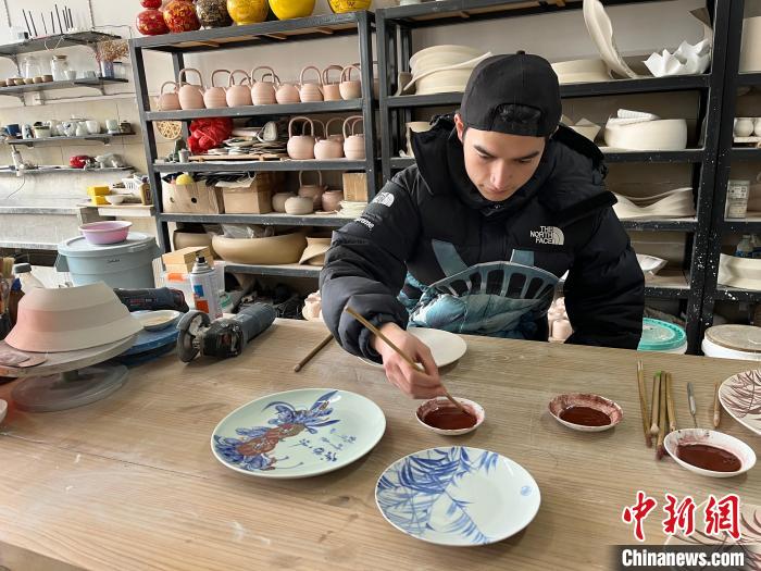 “我母亲也是一名陶艺家,从小受她影响耳濡目染,便对陶瓷文化十分感兴趣,也对景德镇这座城市非常向往。”中新社记者见到夏天意时,他正在案台前用青花颜料在素坯上勾勒“竹”的图案,并且他的中文十分流畅。