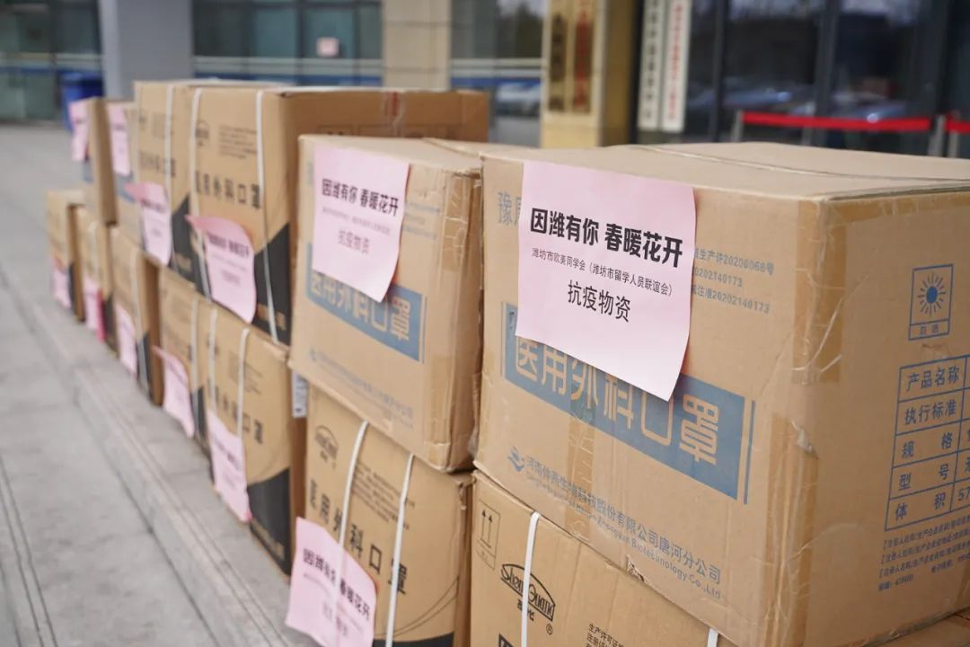 潍坊市欧美同学会会长王立新、常务副会长王成利带头积极筹集抗疫医疗物资,学长们积极响应。3月18日,由秘书处、监事处的学长代表们将筹集到的42000只医用外科口罩送到高新区新城街道、奎文区委统战部、潍城区委统战部,为全市的抗疫工作添砖加瓦。