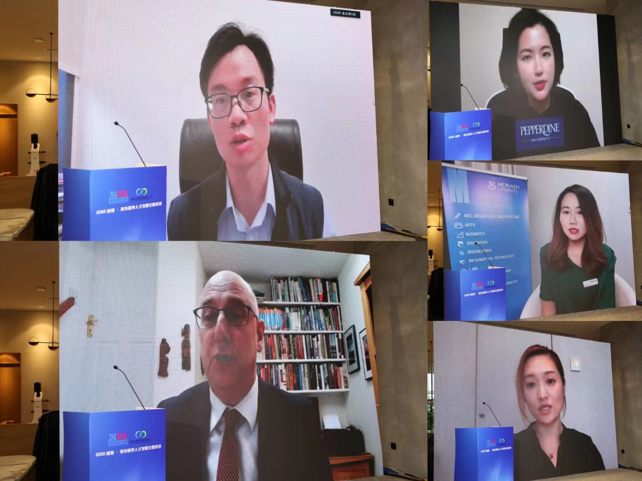 主题对话中,珠海欧美同学会副会长甄勇,副会长、广东纳睿雷达科技股份有限公司董事长包晓军,珠海澳科大科技研究院主任李瑾,珠海先进集成电路研究院有限公司副院长黄冲,围绕企业对人才的需求及引才痛点、海外高校及海归人才的关注点、人才引进渠道及模式进行国际连线对话交流,吸引带动留学人员回国投身科技攻关最前沿、创新创业第一线,助力新时代人才强国战略、广东科技强省建设和珠海产业强市建设。合作区经济发展局、市招商署、市人力资源和社会保障局代表分别介绍了产业发展情况和相关人才政策。