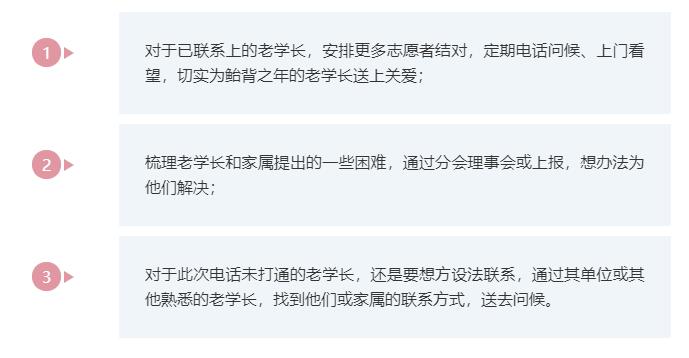 常言道:家有一老,如有一宝。留苏分会的300多位老学长,都是我们的宝贝。如何更好地关爱老宝贝?这次志愿者行动只是开了个头。接下来,我们还将做这样几件事: