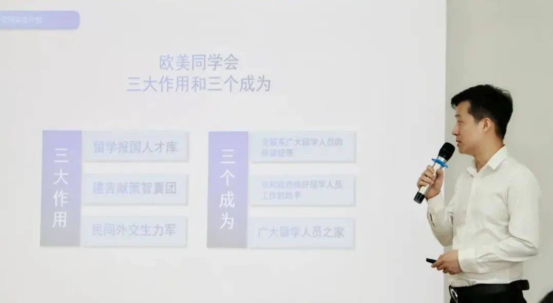 厦门市欧美同学会青年委员会主任陈宁为大家讲述了欧美同学会的发展史以及工作职能等,介绍了厦门市欧美同学会近期活动、组织建设等基本情况,带领学员了解五代留学生的留学梦,激发在场留学归国人员的爱国之情。