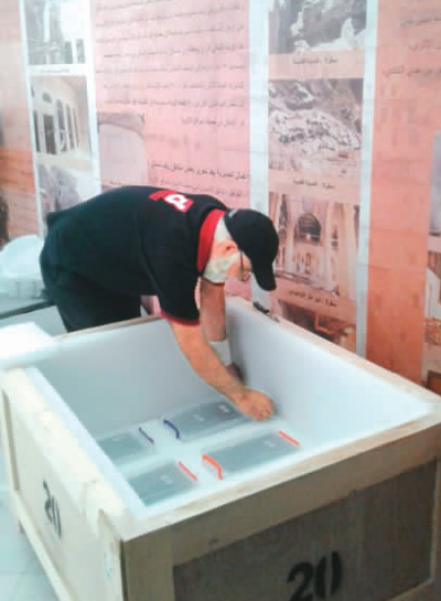 图为2021年5月,叙利亚展品在大马士革国家博物馆装箱,准备前往中国。