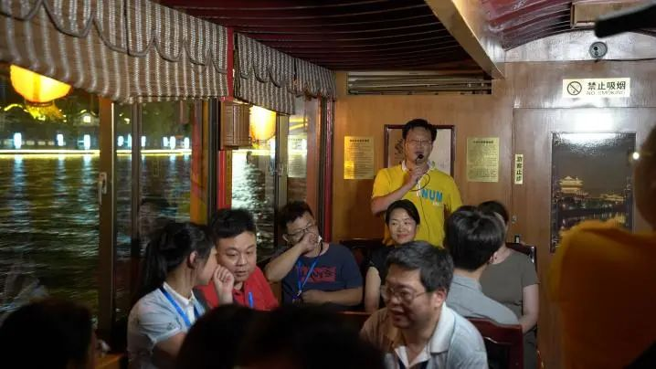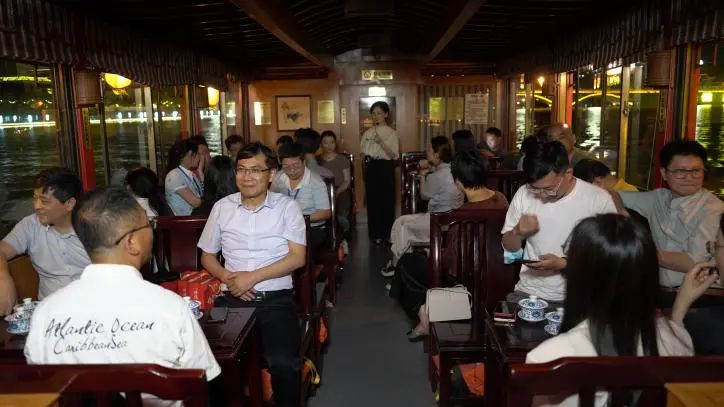 24日晚,海归人才一行来到著名的泰州老街,游览并穿过幽静的古街,随即在老街尽头旁的桃园游船码头乘“画舫”饱览了夜色中的凤城河美景,探寻“水天堂”的幸福密码。在美丽的画舫上,泰州优秀留学归国人员代表与海归人才开展了一场别开生面的创新创业分享交流沙龙活动,现场场面温馨、气氛热烈。海陵区欧美同学会会长、江苏奥泰家具有限公司董事长黄爱梅等分享了回国后的创新创业历程、经验和体会,毕业于美国哥伦比亚大学的管如莉博士、美国罗格斯大学的陈磊博士等介绍了自己的专业优势、学习工作经历、创新项目等,并表示此行所获颇丰,真正认识了解了泰州,也希望能够在泰州创新创业,在泰州这片热土上实现科研成果转化。
