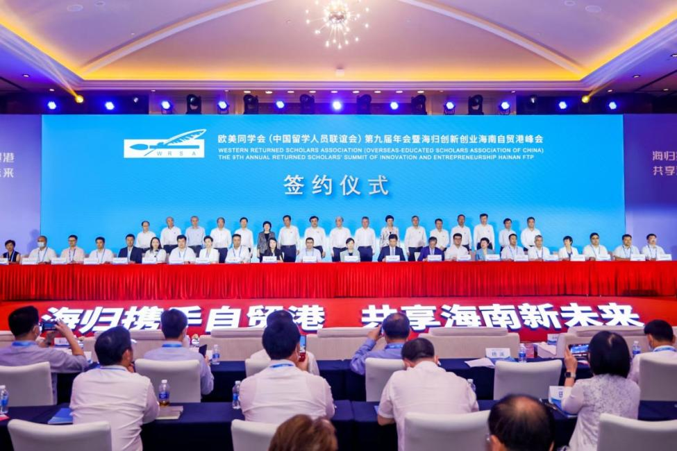 新华社客户端海口7月13日电(记者 陈碧琪)欧美同学会(中国留学人员联谊会)第九届年会暨海归创新创业海南自贸港峰会于近日在海南三亚落幕。通过前期广泛宣传推介和精准接洽,最终有240多个人才、科技项目与海南有关方面对接,其中13个代表性项目在年会开幕式上签约。除项目签约外,欧美同学会还与海南省人民政府签订战略合作框架协议,双方将在吸引留学人才来琼发展、推动留学人员在琼创新创业、促进留学人员为琼建言献策、推动海南国际教育发展、助力“一带一路”高质量发展等方面展开合作;与海南大学签订合作框架协议,双方将在智库建设、引才引智以及国际国内学术科研交流等方面展开合作。