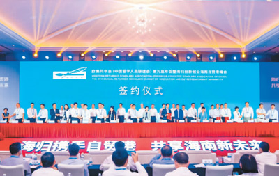 欧美同学会第九届年会暨海归创新创业海南自贸港峰会开幕式上,同时进行了重点项目签约仪式。