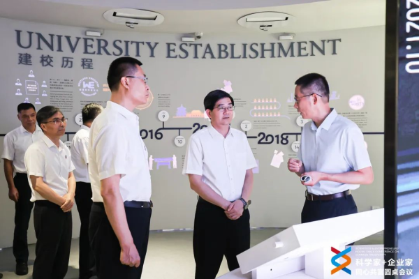 施一公主持圆桌会议会前,与会人员一同参观了西湖大学办学成果。