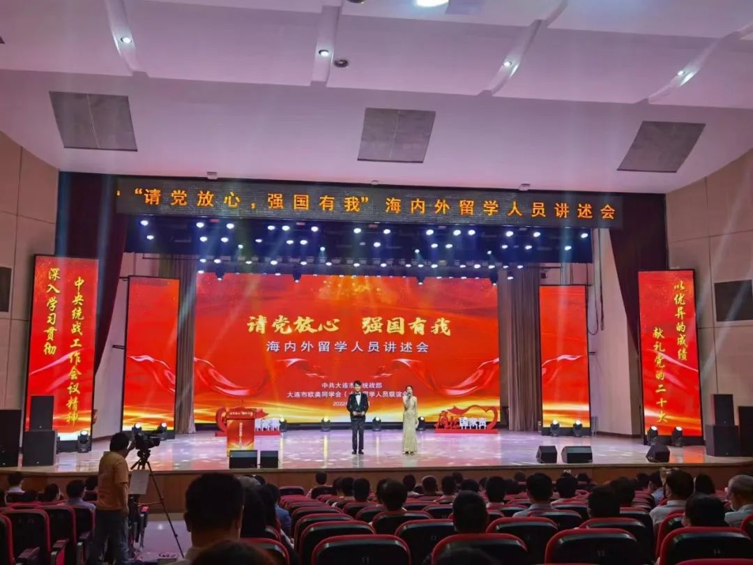 为深入贯彻落实中央统战工作会议和习近平总书记给南京大学留学归国青年学者的回信精神,大力弘扬留学报国光荣传统,8月10日,大连市委统战部、大连市欧美同学会(大连留学人员联谊会)共同举办“请党放心,强国有我”海内外留学人员讲述会。市委常委、统战部部长徐广湘,市人大常委会副主任艾华,市政府副市长刘东立,市政协副主席陈国贵出席活动。相关市直单位、区市县、高校有关领导,市欧美同学会各分会代表260余人参加讲述会。
