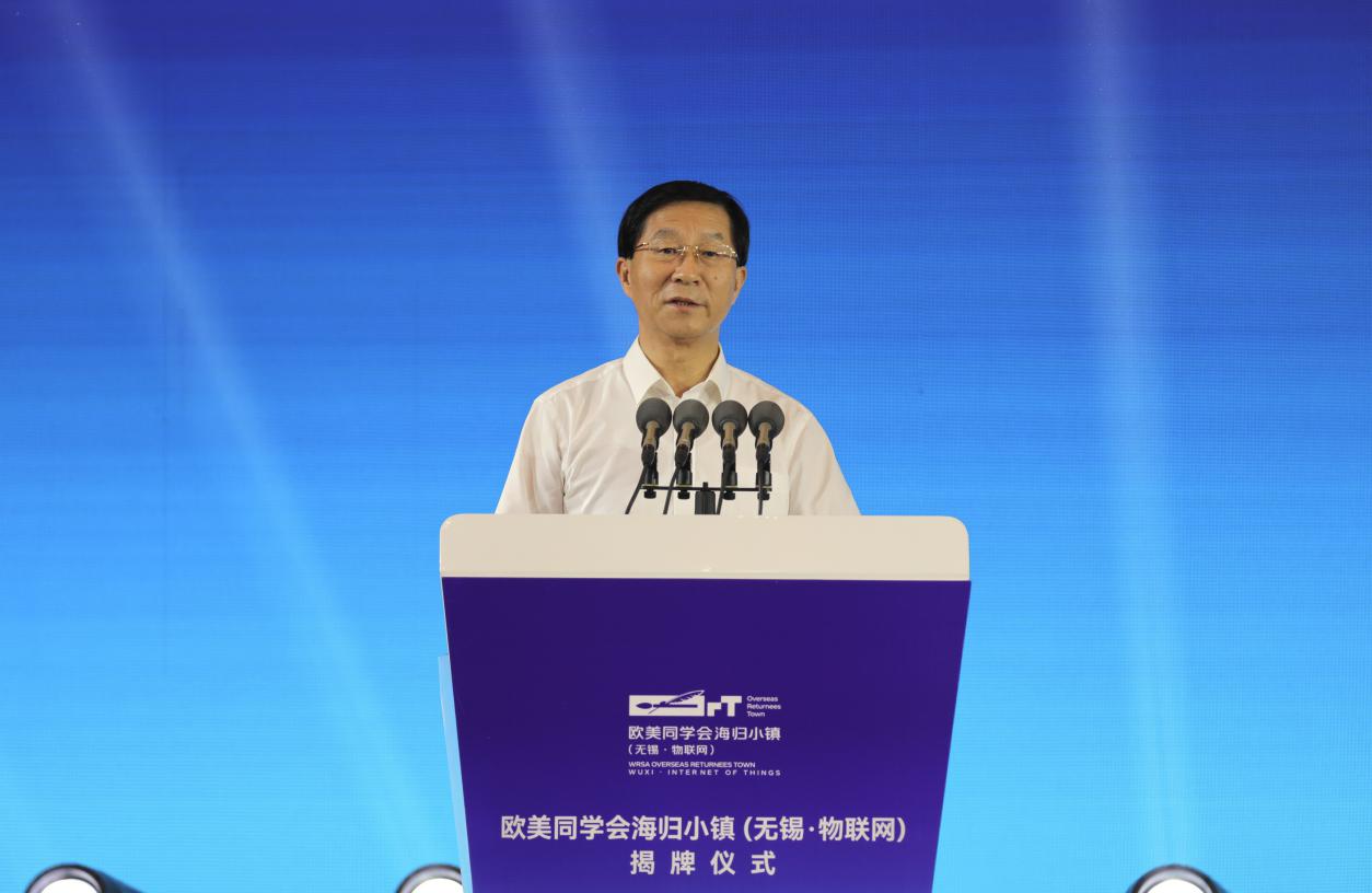 9月15日下午,欧美同学会海归小镇(无锡·物联网)揭牌仪式在无锡市经开区举行。全国人大常委会副委员长、欧美同学会(中国留学人员联谊会)会长丁仲礼,江苏省委常委、统战部部长惠建林出席仪式并共同为海归小镇(无锡·物联网)揭牌。欧美同学会副会长、自然资源部原副部长曹卫星讲话,无锡市委书记杜小刚致辞。欧美同学会党组书记、秘书长王丕君宣读《关于同意欧美同学会海归小镇(无锡·物联网)运营启动的函》。仪式由无锡市委常委、统战部部长周常青主持。