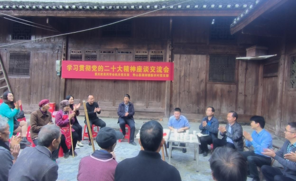 党的二十大胜利闭幕后,重庆欧美同学会党组书记、秘书长陈鹏带队,来到秀山县涌洞镇新农村,调研当地乡村振兴工作,并通过院坝会的形式向当地群众宣讲党的二十大精神,深入浅出地阐释了报告的历史性成就和重要意义,并就当地村民关心的教育、医疗和社会保障等政策进行解答和交流,让党的二十大精神深入基层、深入群众。
