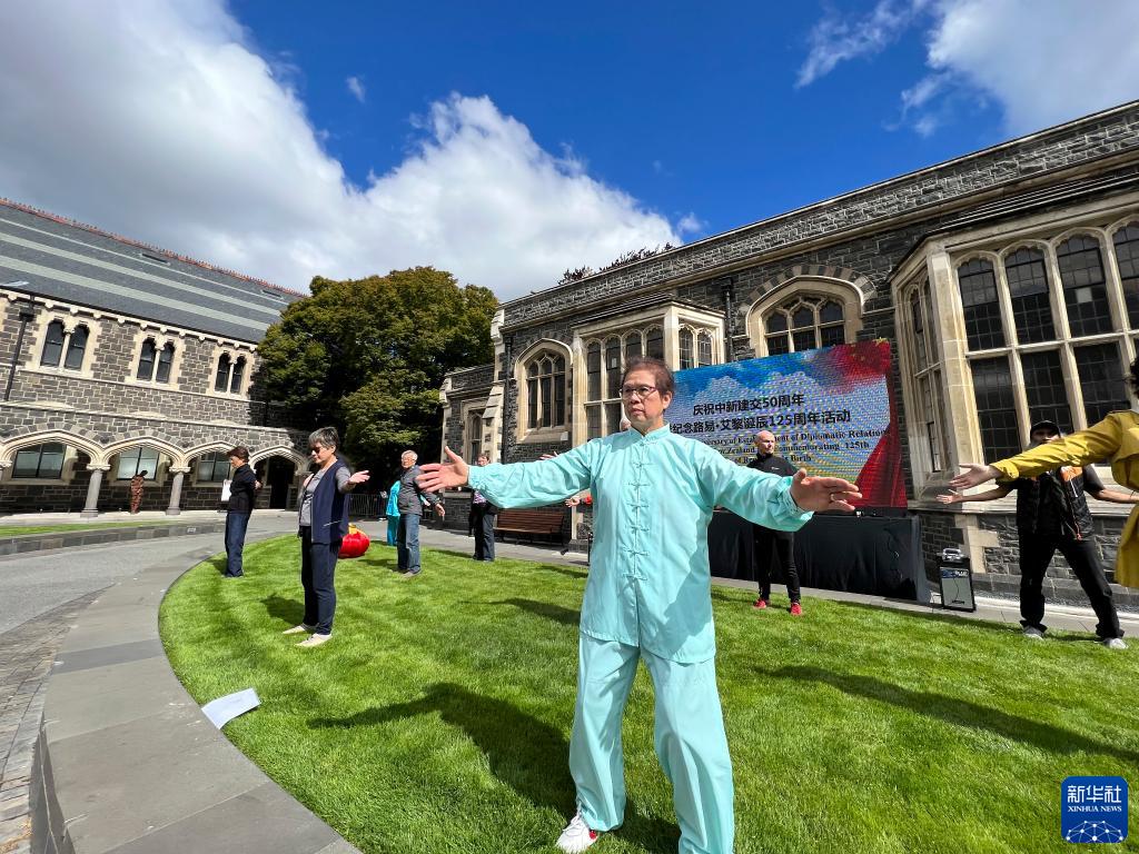 12月2日,在新西兰克赖斯特彻奇,人们在纪念路易·艾黎诞辰125周年活动上体验太极拳。新华社发(王海权摄)