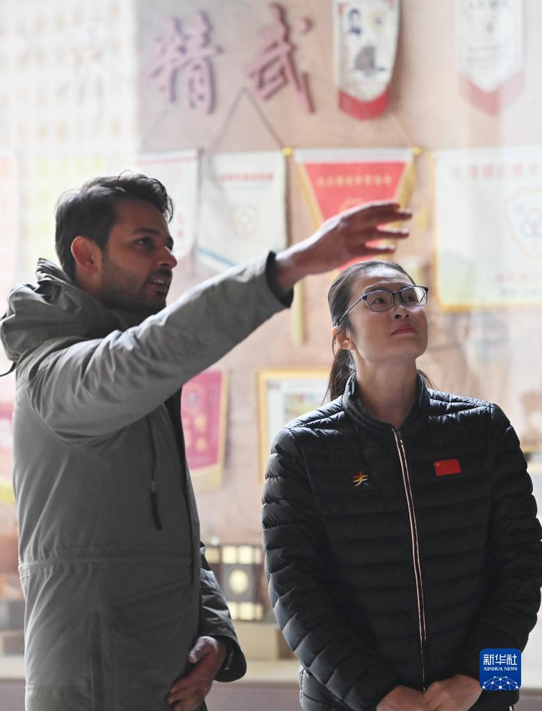 穆罕默德·纳比尔(左)和霍静虹一起在天津市西青区精武镇霍元甲纪念馆参观(12月25日摄)。