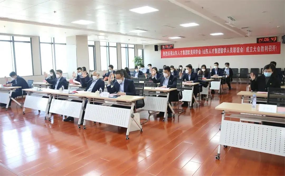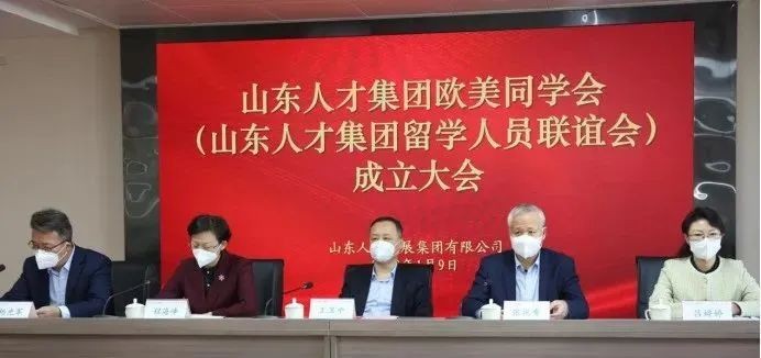 1月9日,山东人才集团欧美同学会(山东人才集团留学人员联谊会)成立大会召开。山东省欧美同学会秘书长程海峰,山东省委组织部人才工作一处三级调研员吕婷婷,山东人才集团党委书记、董事长王卫中,党委副书记、总经理张祝秀出席会议,党委副书记杨光军主持会议。
