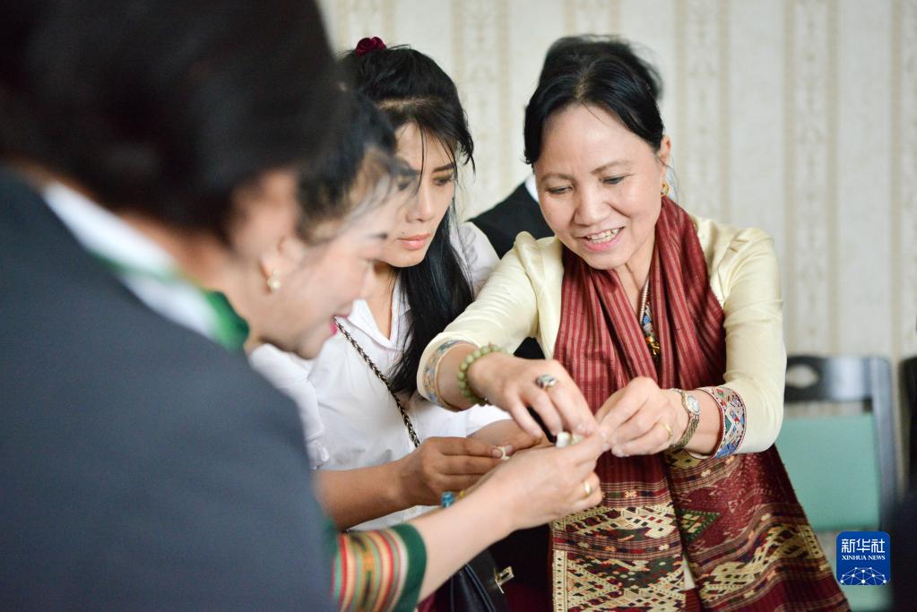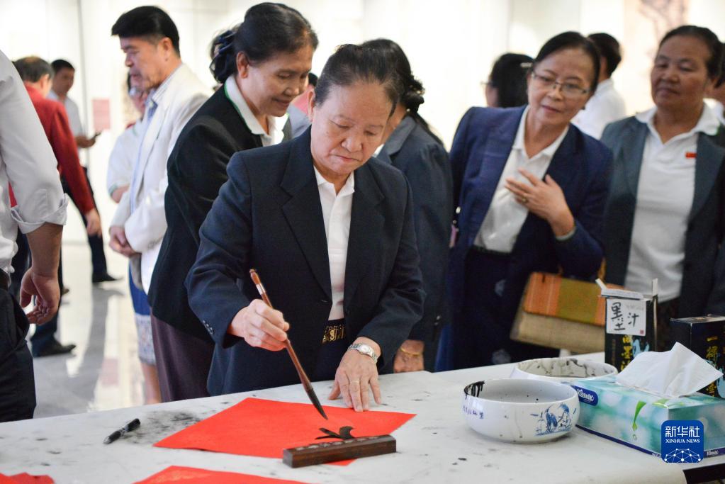 当天参加活动的校友包括老挝全国妇联主席因拉万·乔本潘和老挝总理府办公厅部长坎平·赛宋平等人。他们参观了“江山如画”中国古代立轴山水画体验展,一起写福字、包饺子,并在中国红歌联欢会上齐声高唱《东方红》《北京的金山上》等歌曲,在歌声中回忆在中国的年少岁月。校友们还纷纷拿出自己在“六七”学校的照片,分享当年的故事,感谢中国党和政府向老挝提供的宝贵帮助。