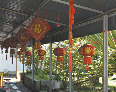 在中国第二十六批赴刚果(金)维和工兵分队营区,中国结、红灯笼装点出浓浓的春节氛围。党天宇摄