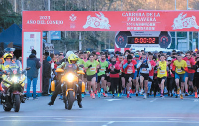 1月29日,西班牙马德里市政府和华人社区联合举办马拉松比赛,共同庆祝兔年春节。姜梓傲摄