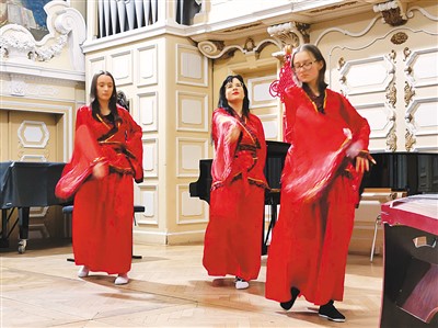 日前,匈牙利米什科尔茨大学孔子学院举办元宵节庆祝活动。图为匈牙利学生表演舞蹈《礼仪之邦》。