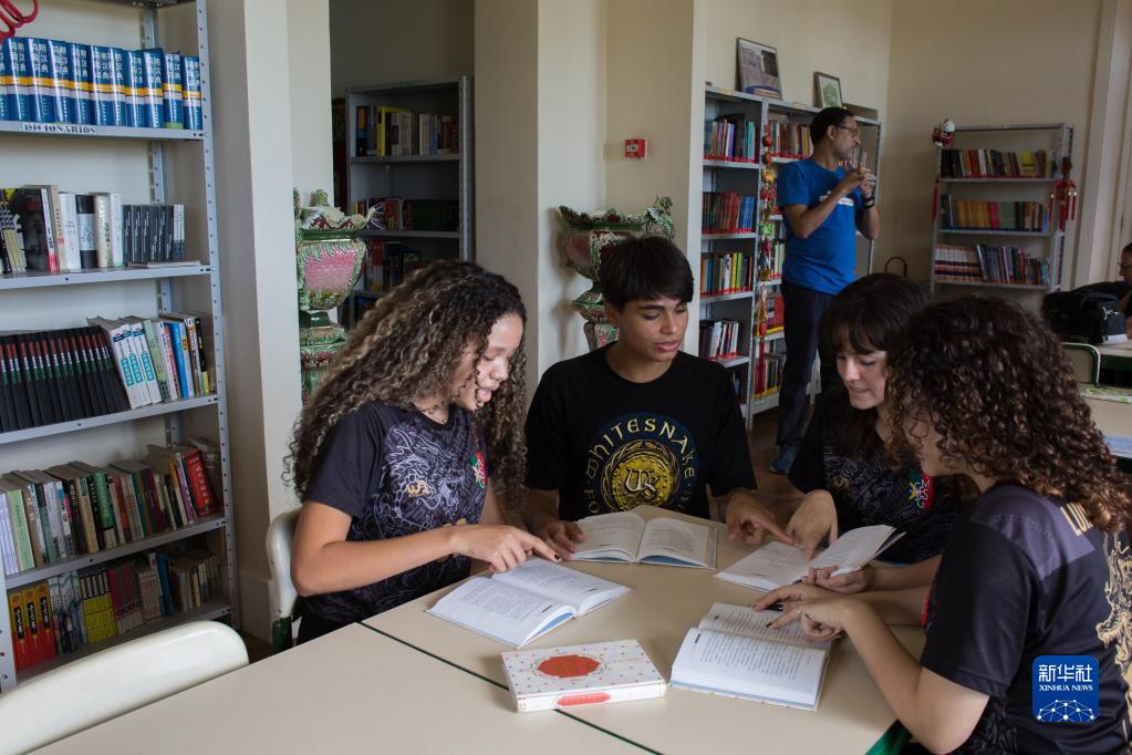 2月15日,学生在巴西尼泰罗伊的葡中双语学校图书馆学习。新华社发(克劳迪娅·马尔提尼摄)