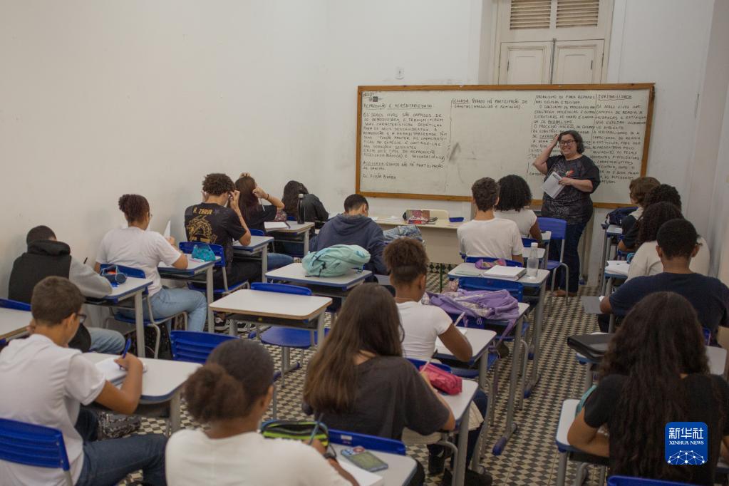 2月15日,学生在巴西尼泰罗伊的葡中双语学校上课。新华社发(克劳迪娅·马尔提尼摄)