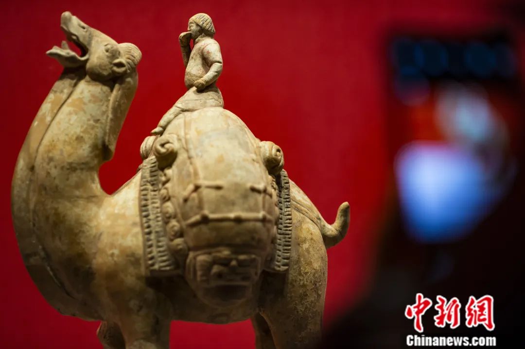 山西博物院藏隋代“胡人吃饼骑驼俑”。侯宇摄