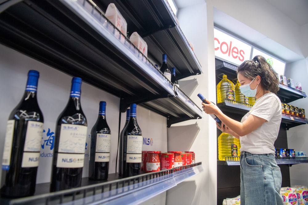 消费者在位于重庆解放碑的“陆海新通道国际消费中心”选购商品(2022年5月28日摄)。新华社记者 唐奕 摄