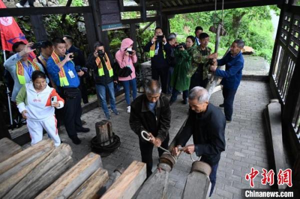古法榨油吸引东盟国家媒体记者的目光。 张卓 摄