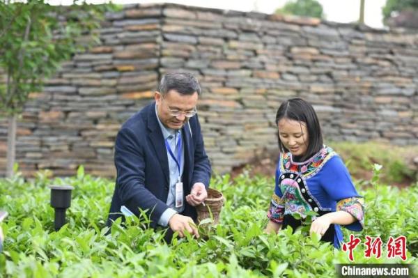 东盟国家媒体记者在辰龙关茶园采茶。 杨华峰 摄