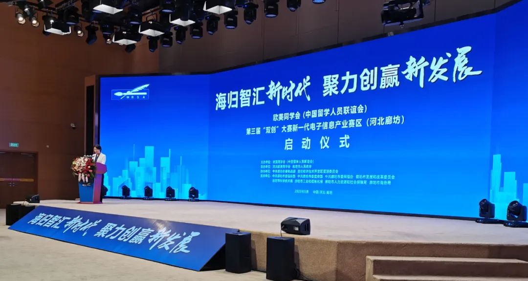 海归智汇新时代,聚力创赢新发展——5月18日下午,欧美同学会(中国留学人员联谊会)第三届“双创”大赛新一代电子信息产业赛区(河北廊坊)启动仪式在廊坊举行。河北省委常委、统战部部长夏延军,欧美同学会党组成员、副秘书长程洪明,省委统战部副部长赵明远,河北欧美同学会秘书长关东亮出席活动;廊坊市委副书记张海川致辞,市委常委、组织部部长、统战部部长孙丽娜主持活动。150余名海内外留学精英及多家知名投资机构代表齐聚廊坊,共商共建电子信息产业新发展格局,助力河北产业转型升级和经济高质量发展。