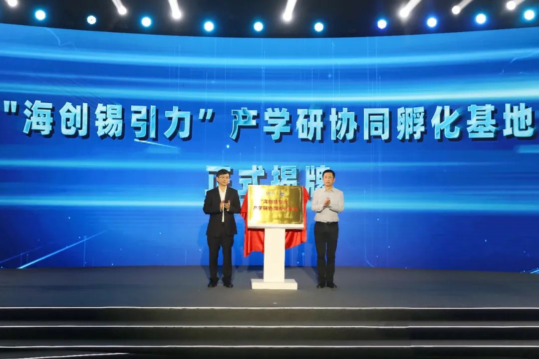 当天,江南大学党委副书记戴月波与无锡经开区党工委副书记、党群工作部部长俞政业共同为“海创锡引力”产学研协同孵化基地揭牌,今后基地将更好更快实现关键技术攻关、产学研成果转化、人才培育和创业支持,吸引全球更多的海归人才落户小镇,助力欧美同学会海归小镇更好发展。
