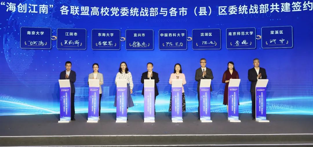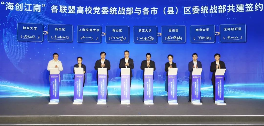 同时,无锡市工商联与江南大学“海创讲堂”共建签约,复旦大学、上海交通大学、浙江大学、南京大学等“海创江南”联盟高校党委统战部与各县(市)区委统战部共建签约。此举旨在充分发挥高校智库作用和教育资源优势,加强校地携手、引才聚慧的深入实践的同时,进一步拓展海内外高层次人才服务途径,助推无锡人才发展高地建设,实现“政产学研资”一体化共同发展。