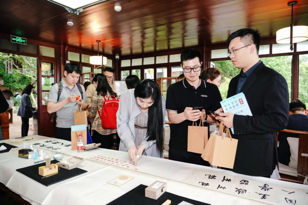 活动在四照阁、题襟馆、还朴精庐三个会场开展,印学专家为大家讲解印石文化知识,参与活动的新老会员在特制印石上篆刻自己的名字,并进行了钤印仪式。