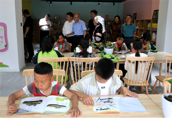 5月17日,调研组在贵州省黔西南州望谟县WarM图书馆现场调研