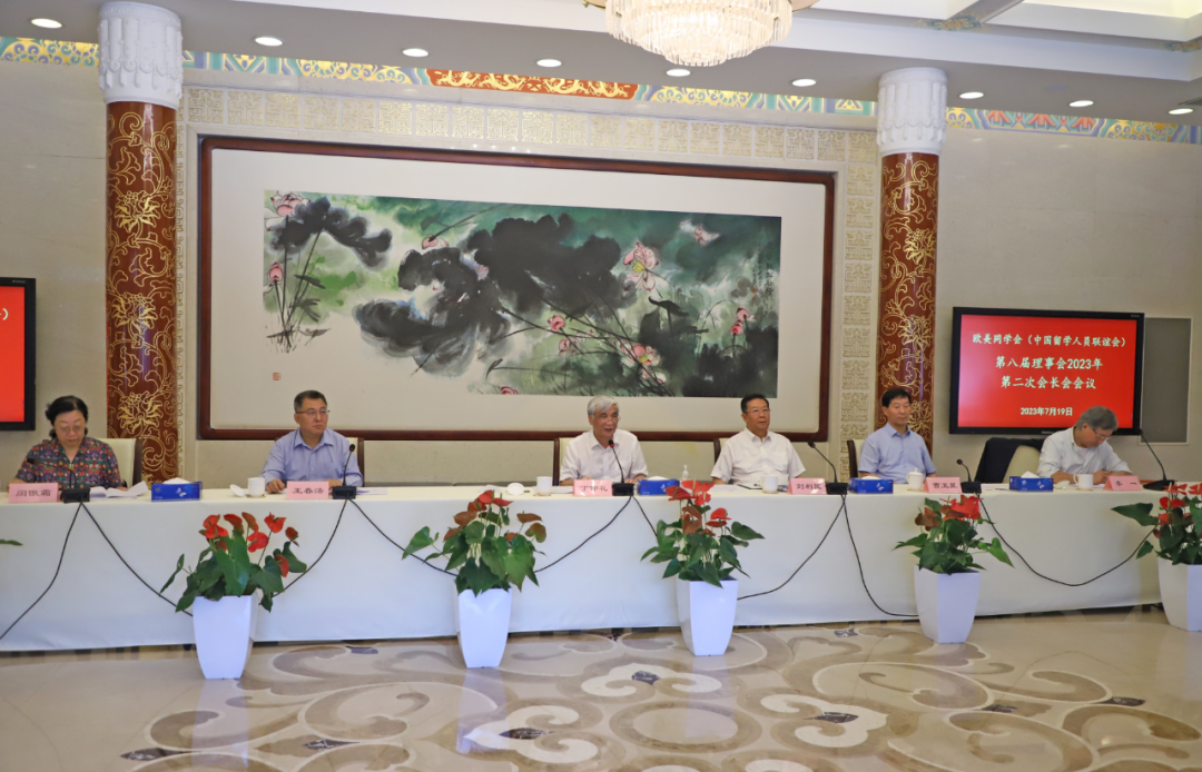 7月19日,欧美同学会第八届理事会2023年第2次会长会会议在北京召开,会议以线下+线上方式举行。全国人大常委会副委员长、欧美同学会会长、中国科学院院士丁仲礼主持并讲话。副会长刘利民、王春法、曹卫星、闫傲霜、李一在北京主会场出席,副会长黄卫、程林、张柏青、陈贵云、施一公、李林、许京军在分会场出席会议。中央统战部有关业务局负责同志及欧美同学会工作机构秘书长班子成员列席会议。