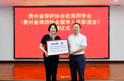 6月20日,贵州省律师协会欧美同学会(贵州省律师协会留学人员联谊会)挂牌仪式在贵阳举行。贵州省委统战部副部长徐佑刚出席并讲话。民盟贵州省委专职副主委黄琳,民进贵州省委专职副主委郭子仪,致公党贵州省委专职副主委彭剑鸣,贵州省司法厅二级巡视员、省律师行业党委副书记、省律协秘书处秘书长李翔,省律师行业党委副书记、省律协会长白敏,省律协监事会主席、省新联会会长朱山出席活动。