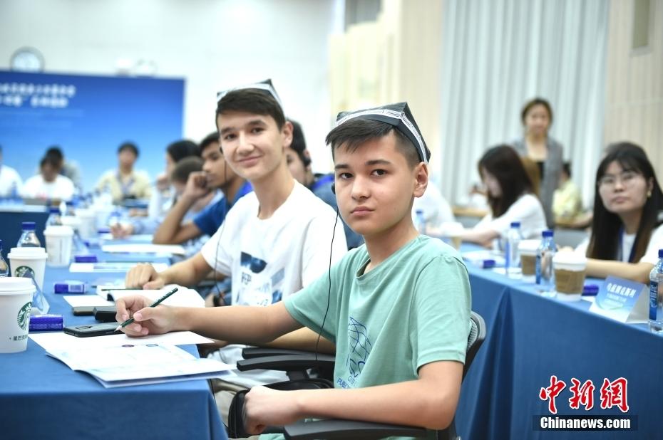 7月14日,在中国新闻社举行的“上合小记者”培训活动上听讲的“小记者”。中新网记者 李骏 摄
