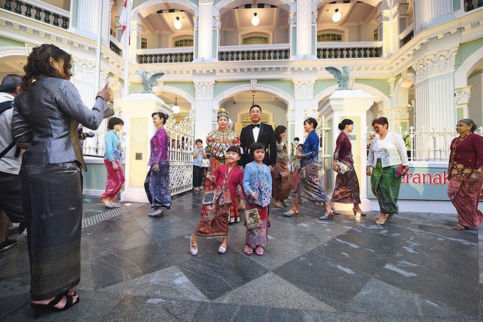 2月17日,在重新开放的新加坡土生文化馆,模特展示传统“娘惹”服饰
