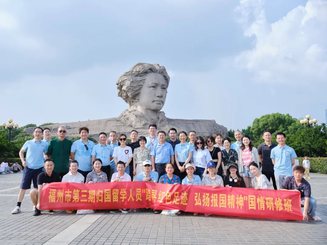 为深入学习领会习近平新时代中国特色社会主义思想和党的二十大精神,汲取红色智慧,传承红色精神,8月7日至11日,福州市归国留学人员赴长沙举办“踏寻红色足迹弘扬报国精神”国情研修班。福州市委统战部副部长林文福、四级调研员唐赛霞全程带班学习。福州市欧美同学会会长陈建明、部分会领导班子成员,近40名归国留学人员参加。