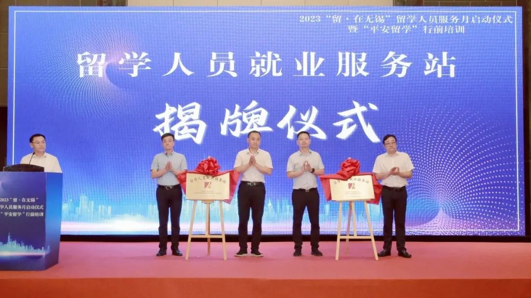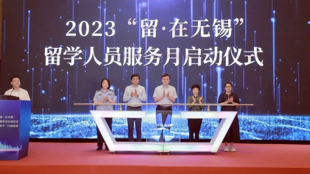 周常青、张映雪、赵俊明、萧晶、市公安局出入境有关负责人,共同启动2023“留·在无锡”——留学人员服务月活动。本次留学人员服务月将推出“平安留学”行前培训、“百名靓才话无锡”海归人才专场访谈、海归人员职业规划提升营等系列精彩活动,活动内容涵盖了出国前中后各个阶段,旨在构建信息互通、资源共享、深度融合的留学人员服务平台,打造全周期全链条的线上线下留学人员服务体系。