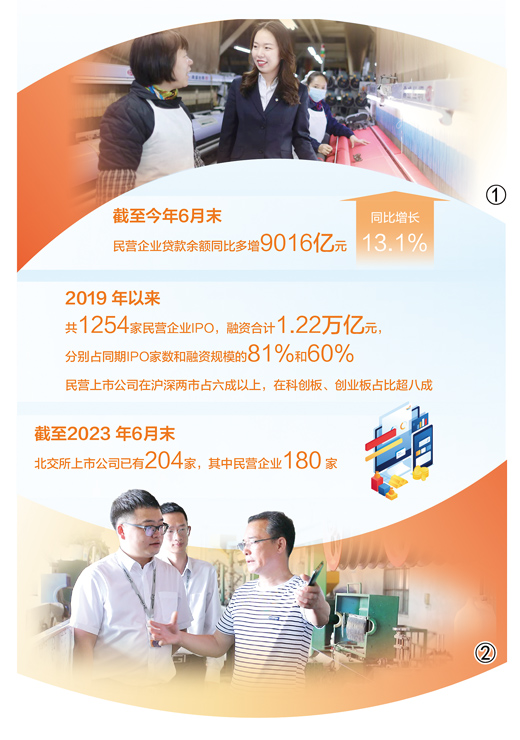 截至6月末,民营企业贷款余额同比多增9016亿元,同比增长13.1%;民营上市公司在沪深两市占六成以上,在科创板、创业板占比超八成……近年来,更多金融活水流向民营经济,为其发展壮大增添动力。